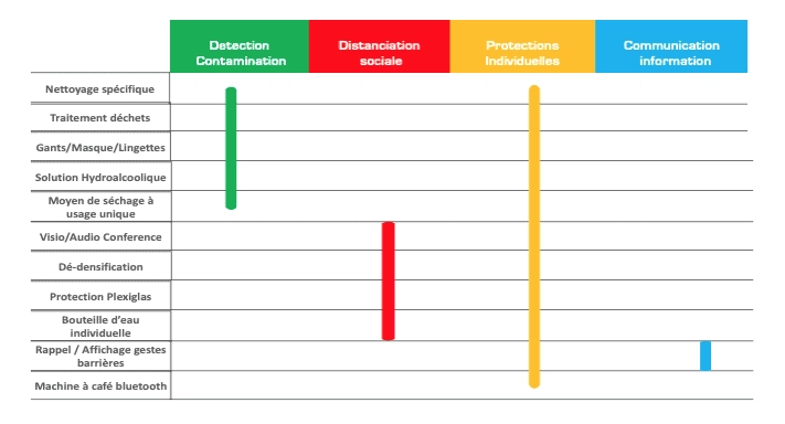 - Chercher à dé-densifier les bureaux, à la fois pour aider les employés à gérer la crise et la transition lors de la reprise, mais aussi pour prévoir de telles perturbations à l’avenir,